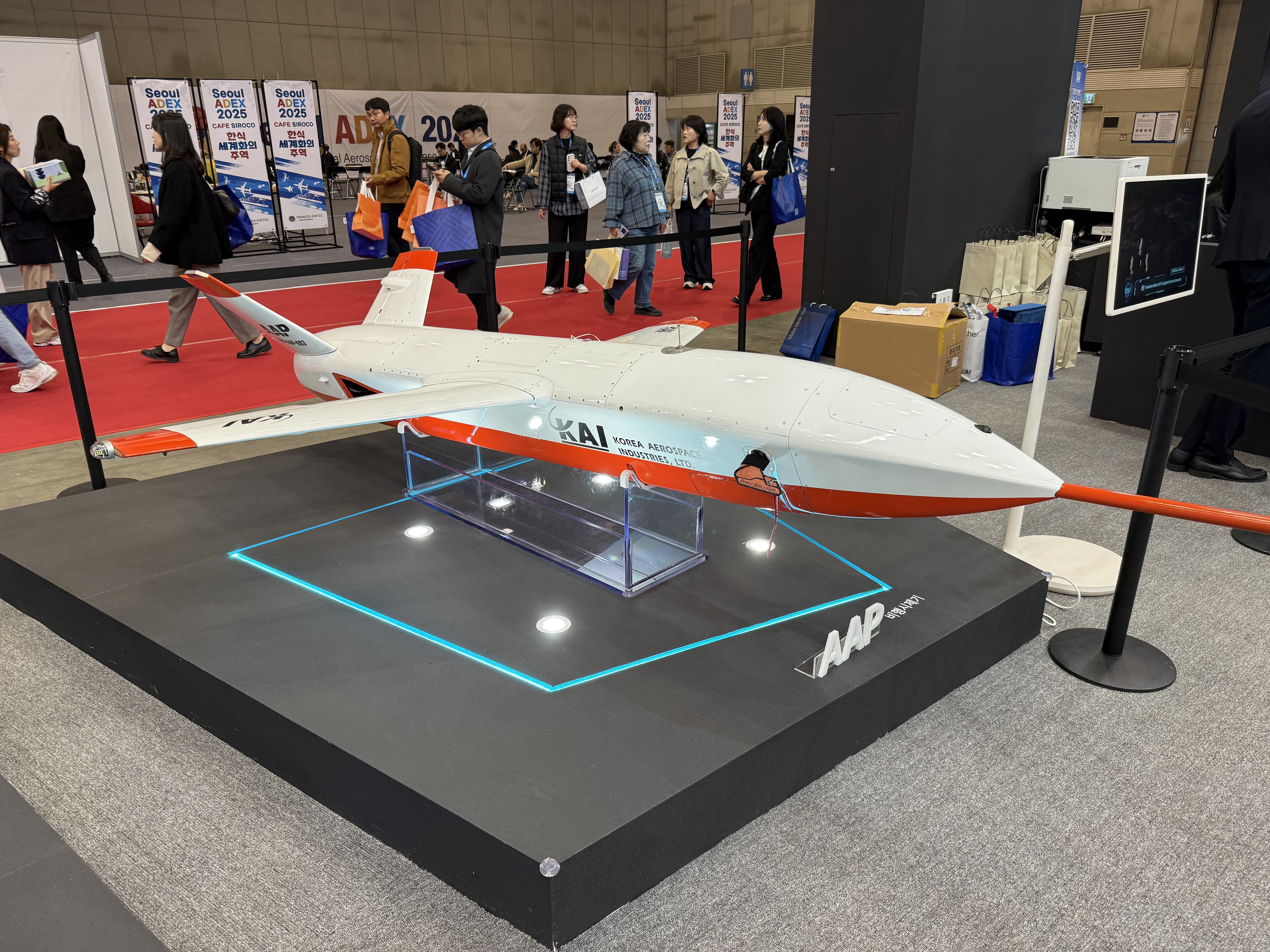 그 다음으로 대한항공의 저피탐 무인편대기처럼 KAI도 무인편대기를 전시했습니다.