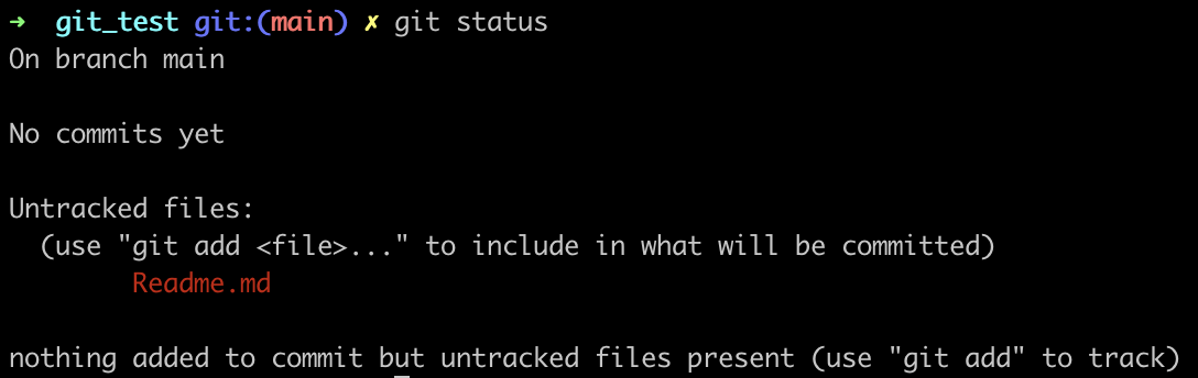 - Untracked : touch Readme.md → Git이 모르는 새 파일